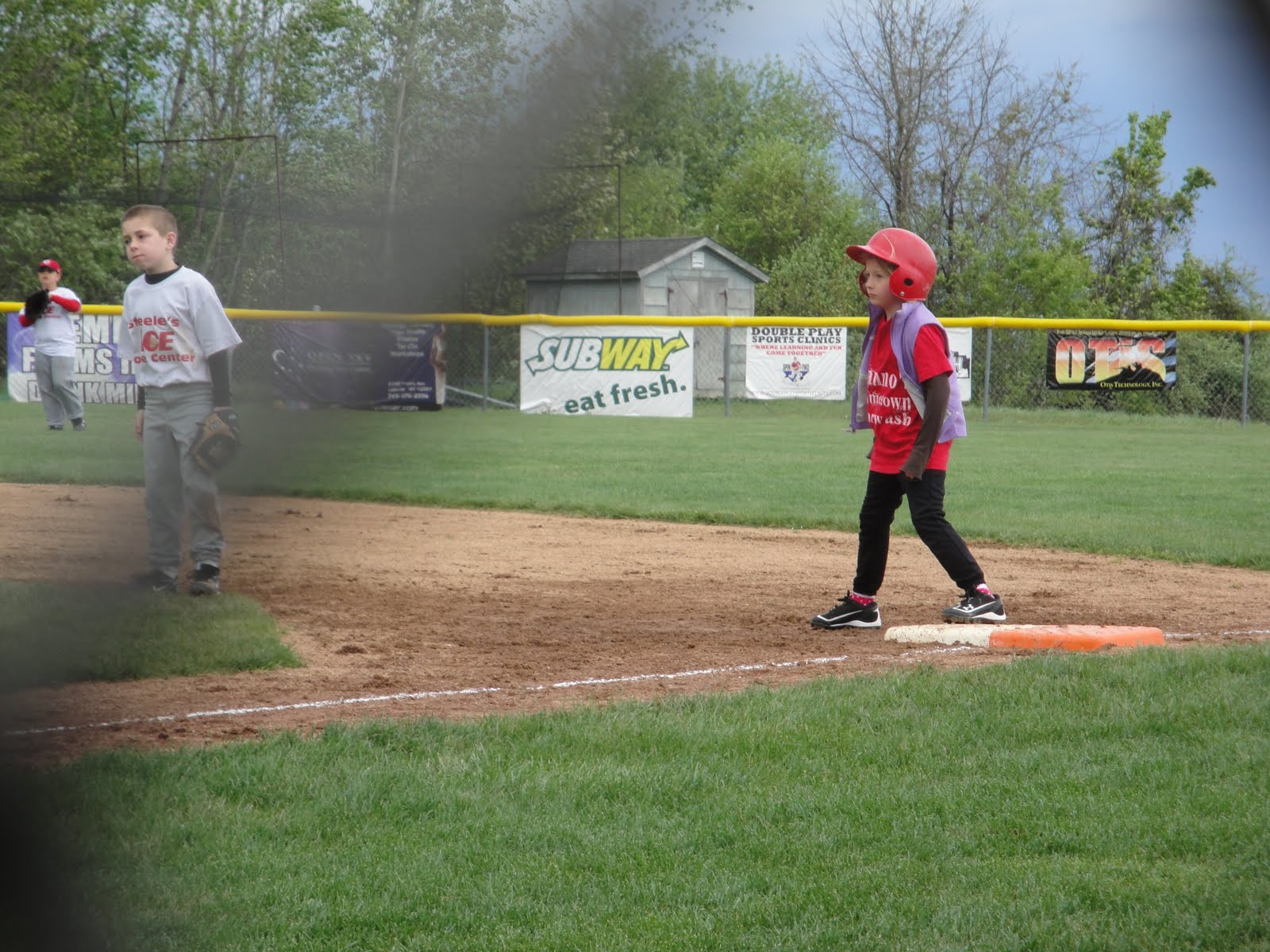Hanna had her FIRST game today. She got walked twice and scored one point for her team. Not much action out in the field to report but she stayed ready the whole time, just in case.